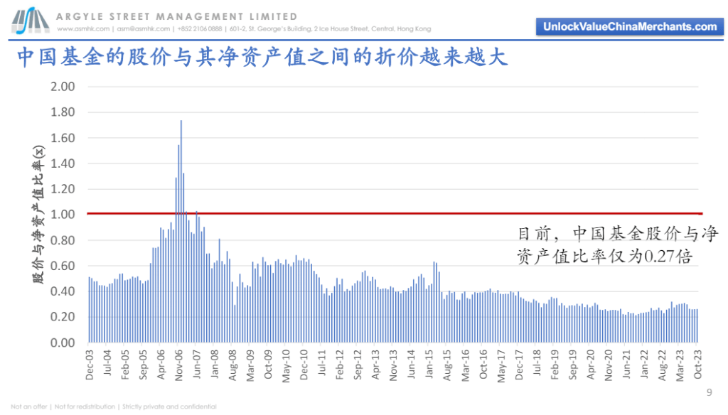 提出的原因是招商局基金股价与净资产值的折价越来越大,即像上述所提到的,管理人每年收取费用已超过股东回报,结果股价PB仅为0.27倍,这如何解决呢?