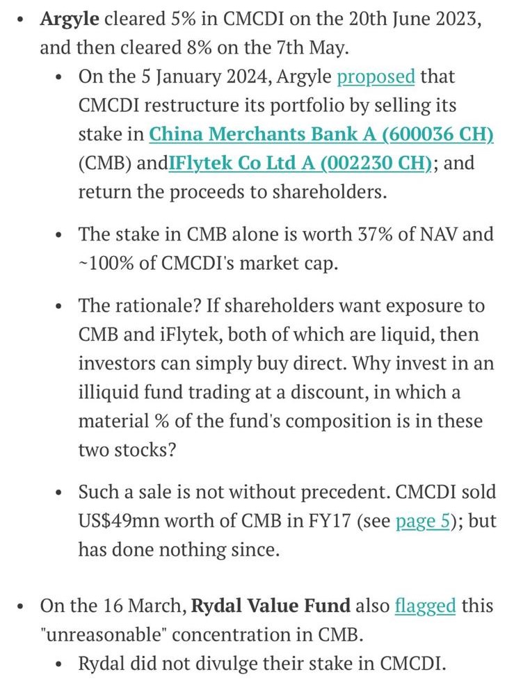 On 27 May 2024, David Blennerhassett, a top writer on SmartKarma.com, wrote an excellent article on China Merchants China Direct Investments (133 HK, CMCDI)